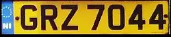 Die Kennzeichen können am linken Rand ein Band mit den Buchstaben UK für das Vereinigte Königreich Großbritannien und Nordirland haben.[1] Manche Kennzeichen führen im Hoheitszeichenfeld statt des „UK“ das Nationalitätszeichen NI für Nordirland oder IRL für Irland. Diese Kürzel sind, im Gegensatz zu beispielsweise SCO für Schottland oder CYM für Cymru (Wales), nicht offiziell.[2]