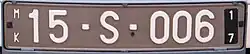 Die 1993 eingeführten Diplomatenkennzeichen beginnen mit den übereinander stehenden Buchstaben SK für Skopje, gefolgt von einer zweistelligen Zahl, die das Herkunftsland verschlüsselt. Es folgen ein bis zwei Buchstaben, die den Status des Fahrzeugs angeben, bevor eine maximal dreistellige Unterscheidungsnummer erscheint. Am rechten Rand befinden sich zwei wiederum übereinander stehende Ziffern, die das Gültigkeitsjahr angeben. Damit lehnten sich die Schilder für Diplomaten im Wesentlichen an das jugoslawische System an und glichen den zu dieser Zeit in Bosnien und Herzegowina sowie Serbien verwendeten. 1996 wurde die Schriftfarbe von gelb zu weiß und die Buchstabenkombination von SK in MK geändert. Die Gestaltung wurde 2012 nur leicht überarbeitet.