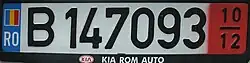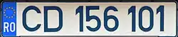 Die aktuellen rumänischen Kfz-Kennzeichen wurden 1992 eingeführt und zeigen links einen blauen Streifen mit den zwölf europäischen Sternen und dem Nationalitätszeichen RO. Danach folgen ein (B für Bukarest) oder zwei Buchstaben (für den jeweiligen Kreis) und eine amtliche Plakette. Rechts davon erscheinen neben zwei (in Bukarest ab 2010 auch drei) Ziffern noch drei Buchstaben. Vor Rumäniens Beitritt zur Europäischen Union 2007 war die rumänische Nationalflagge im blauen Balken abgebildet. Zweizeilige Nummernschilder zeigen den Balken meist in der unteren Zeile.