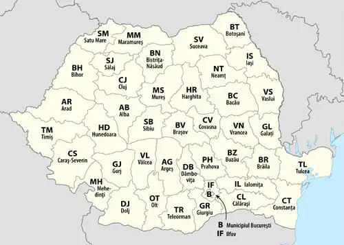 Insgesamt existieren derzeit 42 Kürzel für die rumänischen Kreise (rumänisch Județ, Plural Județe) und die Stadt Bukarest.