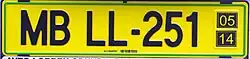 Fahrzeuge, die aus Slowenien exportiert werden sollen, erhalten gelbe Kennzeichen. Sie zeigen am rechten Rand zwei schwarze Felder mit Angabe von Monat und Jahr der Gültigkeit. Bis 2008 wurde für diese Schilder rote Schrift verwendet.