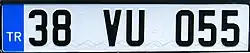 Die Kennzeichen ähneln dem EU-Muster. Sie zeigen am linken Rand einen blauen Balken mit dem Nationalitätskennzeichen TR.