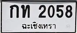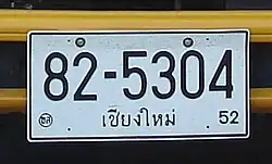 Thailändische Kfz-Kennzeichen entsprechen in der Regel einer Größe von 340 mm × 150 mm. Sie zeigen zwei Buchstaben des thailändischen Alphabets, von denen der erste die Art des Fahrzeuges angibt. Es folgen maximal vier Ziffern. Am unteren Rand erscheint der Name der Provinz, in der das Fahrzeug zugelassen wurde, ebenfalls in thailändischer Schrift. Da in Bangkok bereits alle möglichen Kombinationen nach diesem Schema erschöpft sind, werden seit 2012 Schilder mit einer weiteren Ziffer an erster Stelle ausgegeben. Je nach Verwendungszweck und Fahrzeugart werden verschiedene Farbkombinationen genutzt.