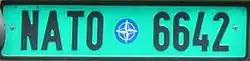 Fahrzeuge der NATO-Hauptquartiere in den einzelnen Einsatzländern erhalten eigene Kennzeichen zugeteilt. Diese zeigen den Schriftzug NATO, das NATO-Symbol und eine fortlaufende Nummer auf türkisgrünem Untergrund. Auch für die Missionen der KFOR und SFOR werden bzw. wurden spezielle Nummernschilder geprägt. Sie zeigen den Missionsnamen, das NATO-Symbol und eine Nummer.