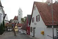 Früheres Rathaus mit Blick auf Kirche Mariä Himmelfahrt