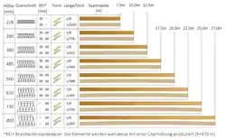 Die folgende Grafik gibt eine Übersicht über das statische Leistungsspektrum von Kielsteg Bauelementen.
