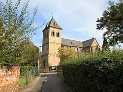 An der Heerstraße von Bonn nach Düren und Aachen (heute Friedrich-Ebert-Straße) stand schon vor dem Jahr 1000 an Stelle der heutigen Kirche eine kleine Saalkirche, die Tholen nach einer im Pfarrarchiv aufbewahrten Zeichnung beschreiben konnte. Ihre Maße von 6,50 m × 5 m entsprach dem der frühen alten Landkirchen, die ohne Turm gebaut waren. Im 11. oder 12. Jahrhundert wurde an der Nordseite ein kleines Seitenschiff angefügt. Tholen, der den noch erhaltenen romanischen Turm untersuchte, ging davon aus, dass er um 1150 erbaut wurde.[2] Nach heutigen Untersuchungen entstand er um 1165 und zählt zu den bedeutendsten Baudenkmälern Erftstadts.