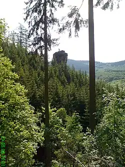 Der etwa 15 Meter hohe Fels befindet sich in einer Höhe von etwa 500 m ü. NN. Er besteht aus relativ brüchigem Quarzporphyr, wird eher selten von Sportkletterern besucht. Mehrere Wege sind ausgeschildert, am Fels sind Routen eingerichtet, auf dem Turm befindet sich ein Gipfelbuch.