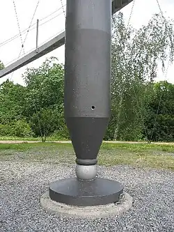 Wesentliche Konstruktionselemente des Turms sind der zentrale, etwa 40 m hohe Mast, dessen Fuß gelenkig auf dem zentralen Fundament gelagert ist, und das Netz aus dreieckigen Stahlseilmaschen. Das Netz ist verspannt zwischen einem ringförmigen Schwergewichtsbetonfundament und einem Druckring („Adventskranz“) in 33,5 m Höhe, der seinerseits über Aufhängeseile mit dem Mastkopf verbunden ist.