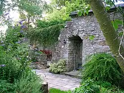 1912 konnte man im Feld anschließend an die Hauptstraße noch Spuren einer Allee entdecken, die am Stadtrand begann und weitschweifig zur alten Hausfront führte. Cuthbertson notierte, dass einige dieser Buchen noch bis 1945 dort waren.[35] Der Eingang von der Mühlengasse über eine Brücke über Carmel Water soll gebaut worden sein, als die Hausfront geändert wurde.[36]
