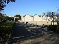Das Gebäude ist von drei Seiten von Straßen umgeben, zum Westen hin liegt ein Park, der schon vor 1972 bestand. Dorthin orientierte Kahn den Haupteingang. Der Zugang für Besucher mit PKW erfolgt vom Parkplatz im Norden und Osten auf einer tieferliegenden Ebene, so dass das Gebäude im Untergeschoss betreten wird. Über eine symmetrische Treppenanlage gelangt man von dort in die zentrale Eingangshalle. Auf der Nordseite wurde – ebenfalls auf der tieferen Ebene – die Anlieferung untergebracht. Nach Süden liegen terrassierte Grünanlagen und ein Skulpturengarten; die Gestaltung der Landschaftsarchitektur übernahm die Landschaftsarchitektin Harriet Pattison.
