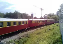 Im regulären Personenverkehr werden sechs Wagen des Typs VP750 von der Maschinenfabrik Kambarka verwendet (Stand Juni 2015).[2] Die Wagen wurden zu unterschiedlichen Zeiten beschafft: Die ersten drei Wagen wurden im Jahr 2010 geliefert, vor dem Abschluss der Wiederherstellung der Bahnstrecke. Sie sind rot und gelb lackiert. Die zweite Charge, die auch aus drei Wagen besteht, wurde Mitte 2013 geliefert. Diese Wagen haben eine leicht modifizierte Form insbesondere bei den Fenstern und sind mit Gepäckregalen sowie Tischen ausgestattet. Die Wagen wurden nicht neu gestrichen und tragen noch die ursprünglichen grauen, roten und blauen Farben. Unter der Woche haben die Züge normalerweise drei Wagen und an Wochenenden sechs Wagen. Auf dem Abstellgleis beim Museum sind außerdem einige Pafawag-Wagen abgestellt, die noch generalüberholt werden müssen.