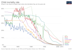 - ↑ a b Child Mortality - Our World in Data, Kindersterblichkeit, 1751–2013. Die Daten stehen unter der Lizenz Creative Commons BY license., abgerufen am 2. Mai 2019