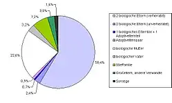 - ↑ a b c d e f g Survey of Income and Program Participation: Living Arrangements of Children: 2004 (PDF; 1,2 MB)