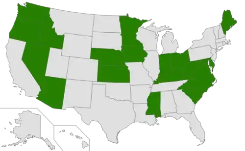 | Rhode Island | 21 | 18 | - | 18[28] |