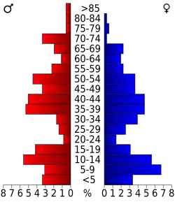 33,7 Prozent der Bevölkerung war unter 18 Jahre alt, 3,7 Prozent zwischen 18 und 24, 29,5 Prozent zwischen 25 und 44, 22,8 Prozent zwischen 45 und 64 und 10,4 Prozent waren 65 Jahre alt oder älter. Das Medianalter betrug 37 Jahre. Auf 100 weibliche Personen kamen 95,6 männliche Personen und auf 100 Frauen im Alter von 18 Jahren oder darüber kamen 100 Männer.