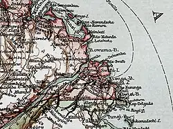 Mit der Gründung von Deutsch-Ostafrika 1885 schwand die Macht Sansibars. Als 1886 eine deutsch-englisch-französische Grenzkommission die Küste bereiste, um den Umfang des sansibarischen Gebiets festzustellen, schickte der portugiesische Gouverneur eine militärische Expedition in den südlichen Teil der Tungibucht, woraufhin die Grenzkommission festhielt, dass der sansibarische Bereich im Süden bis zur Mündung des Minengani Rivers[5] in diese Bucht reicht.[6] Das folgende britisch-deutsche Grenzabkommen vom 29. Oktober 1886 wiederholte diese Bestimmung, ließ aber das Gebiet zur Abgrenzung der Interessensphären erst am Rovumafluss beginnen.[7]