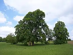 Zwischen Kippenwang und Aberzhausen steht unter mächtigen Bäumen eine Kapelle; das Altarbild „zu Ehren der heiligen Dreifaltigkeit und 14 hl. Nothhelfer“ stiftete der „achtbare“ Kippenwanger Bauer Matthias Betz 1872.[21] Der Putzbau mit Satteldach aus dem 18. /19, Jahrhundert gilt als Baudenkmal.