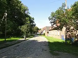 Das Dorf wird von der aus dem 13. Jahrhundert stammenden Kirche überragt. Nördlich des Gutshauses befinden sich an der Dorfstraße noch Gutskaten mit Stallungen im Originalzustand und lassen das einstige lang gestreckte Angerdorf in seinen Umrissen noch erkennen. An einigen Giebeln sind im oberen Dreieck kleine Sandsteintafeln mit den Initialen, wie KLAD 1881 zu sehen. Das bedeutet: Klosteramt Dobbertin, erbaut 1881.