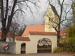 Das Gotteshaus ist eine romanische Chorturmkirche, die um 1250 entstand. Das rechteckige Kirchenschiff, ursprünglich 6 Meter kürzer und 70 Zentimeter flacher, war mit eingezogenem Chorturm und halbrunder Apsis typisch für den romanischen Dorfkirchenbau der Region. Der Kirchturm hat oben gekuppelte romanische Schallluken.
