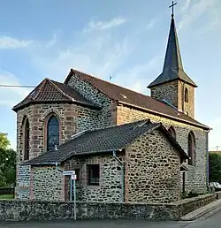 Die erste Kirche wurde 1210 erbaut. Durch einen Blitzschlag im Jahre 1885 wurde sie stark beschädigt. Die drei Kirchenglocken, sowie die 1858 von Carl Jakob Ziese gebaute Orgel, die im Chor hinter dem Altar stand, und die Turmuhr blieben unbeschädigt. Am 30. Juli 1886 wurde dann der Grundstein für eine neue Kirche gelegt. Sie besteht aus dem mit einem achtseitigen, schiefergedeckten, spitzen Helm bedeckten Kirchturm im Westen, einem mit einem Satteldach bedeckten Langhaus und einem eingezogenen Chor mit dreiseitigem Abschluss. Am 6. November 1887 wurde die neue Kirche eingeweiht. Die vom Feuer unbeschädigte Orgel konnte in der neuen Kirche nicht unterkommen. So baute Johann Georg Förster ein neues Werk unter Verwendung von viel Material der alten Orgel in ein neues Gehäuse. Es umfasst 9 Register auf einem Manual und Pedal.[1] 1889 mussten die Glocken, die nicht im ganzen Dorf zu hören waren, höher gehängt werden. Von den drei Glocken wurden im Ersten Weltkrieg die zwei größeren zu Kriegszwecken abgegeben. 1922 wurden neue Glocken angeschafft. Diese wurden im Zweiten Weltkrieg ebenfalls eingeschmolzen. Erst 1950 konnten zwei neue Glocken angeschafft werden, die noch heute im Kirchturm hängen. 1955 wurde der Innenraum umgebaut. Die Emporen an den Seiten und im Chor wurden durch eine Empore im hinteren Teil der Kirche ersetzt. Auch die Kirchenbänke wurden neu angeordnet, sodass ein Mittelgang zum Altar entstand. Die Sakristei wurde im Jahre 1982 in das Kirchenschiff integriert.