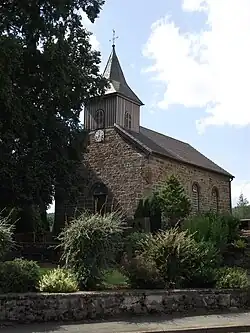 Die ältere Kirche wurde zwar 1580 noch mit Strebepfeilern versehen, sie musste jedoch 1855 wegen Baufälligkeit abgerissen werden. An ihrer Stelle wurde 1855–57 die spätklassizistische Saalkirche aus Natursteinmauerwerk im Rundbogenstil errichtet. Aus dem Satteldach des Kirchenschiffs erhebt sich im Osten ein quadratischer Dachreiter, der mit einem geknickten, achtseitigen, spitzen, schiefergedeckten Helm bedeckt ist.