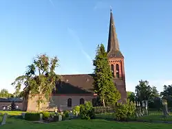 Der älteste Teil der Kirche ist der aus dem 13. Jahrhundert stammende, rechteckige Chor aus Feldstein. Aus dieser Zeit ist noch ein frühgotisches Portal an der Südseite erhalten. Im 18. Jahrhundert wurde der Chor durch einen Anbau aus Backstein nach Westen zum Langhaus erweitert. Der querrechteckige Westturm und die fünfseitige Apsis am Ostgiebel wurden 1879 in Backstein angebaut.