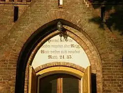 Die Grundmauern der Saalkirche wurde im 15. oder 16. Jahrhundert aus Backstein errichtet. Der querrechteckige Chor mit umlaufendem Konsolfries ist jünger. In der zweiten Hälfte des 19. Jahrhunderts wurde das Gebäude stark überformt, der Chor erhielt seinen dreiseitigen Abschluss. Gleichzeitig wurde der quadratische Westturm gebaut und die Brautpforte angelegt. Die Sakristei wurde wahrscheinlich nur erneuert. Der Turm hat seitliche Anbauten und einen hölzernen Aufsatz mit offener Laterne. Gestufte Strebepfeiler stützen Chor und Schiff. Die Fenster sind zweibahnig mit großem Scheitelokulus.