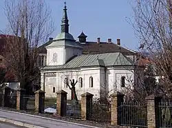 Die barocke Kirche weist auch Elemente des Klassizismus und des byzantinischen Baustils auf. Das Kirchenschiff wird von einem Tonnengewölbe überspannt und ist mit einer dreiseitigen Apsis, und zwei Chören über rechteckigem Grundriss ausgestattet. Ein kleiner Glockenturm mit spitz zulaufendem Dach erhebt sich über der Nordwand.