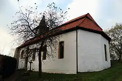 Das heutige Kirchengebäude ist ein einfacher in Hanglage errichteter barocker Saalbau mit polygonalem Schluss. Sie wurde 1652 erbaut, nachdem der Vorgängerbau räumlich zu klein geworden war. Den Mittelteil des Kirchenschiffes schmückt ein Tonnengewölbe. Der Dachreiter misst 7,50 Meter über dem First und prägt damit das Ortsbild. Der Kanzelaltar entstand in der zweiten Hälfte des 17. Jahrhunderts. Das Altargemälde hat das Abendmahl als Thema. Im Kirchenschiff schwebt ein barocker Taufengel aus der Mitte des 18. Jahrhunderts.