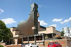 An der Saatlenstrasse unweit der viel befahrenen Wallisellenstrasse erhebt sich die Kirche Saatlen auf einem fast quadratischen Baugrund. Weil das Areal eher eng bemessen ist, erhebt sich das kirchliche Zentrum auf zwei Geschossen, wobei sich die eigentliche Kirche im Obergeschoss befindet. Der Baukörper ist komplex aufgebaut und wirkt durch die Staffelung der Flachdächer und des Kirchturms expressiv. Um einen Vorplatz herum sind die Bauteile kranzartig angelegt, wobei der Kirchenraum sich als reiner Kubus von den übrigen Baukörpern abhebt. Das Ensemble wird vom Kirchturm überragt.[2]
