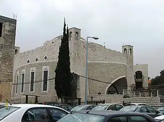 Den ersten, symbolischen Spatenstich vollzog am 9. September 1999 das Haupt des Kirchenvorstands Jean Maǧdalani (جان مجدلاني), für den sich ein Lebenstraum erfüllte und der bald darauf starb,[1] in Gegenwart eines seiner Nachfolger Jussif Churi (يُوسِف خُورِيّ, DMG Yūsif Ḫūrī), vieler Parochianen wie Maha Ballans sowie Amram Mitznas und weiterer Gäste.[2] Im folgenden Jahr lobte der Kirchenvorstand einen anonymen Architekturwettbewerb aus, ein neues, alle modernen parochialen Bedürfnisse gerecht werdendes Kirchengebäude mit Gemeinschaftsräumlichkeiten zu entwerfen.[2] Maha Ballan gewann ihn, arbeitete ab Anfang 2000 die Baupläne aus und besorgte dann die Baugenehmigung.[2]