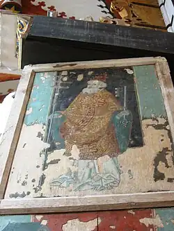 Die doppelte Bemalung der Altarflügel, die etwa 200 Jahre zugenagelt waren, wurde 1963 bei einer Restaurierung wiederentdeckt. Die Heiligendarstellungen auf der Außenseite haben stark gelitten und bedürfen einer dringenden Sicherung. Oben links ist Katharina von Alexandrien auf einer Blumenwiese zu sehen. An ihre Geißelung erinnert das Schwert und das Rad. Daneben ist der Apostel Simon Petrus mit dem Himmelsschlüssel und einem prunkvollen Papst-Ornat abgebildet. In einer roten Gelehrtentracht mit Schwert und Buch ist Paulus von Tarsus unten links, daneben Barbara von Nikomedien zu sehen. Sie steht vor dem Turm, in dem ihr Vater Dioscorus sie einst einsperrte. Der Kelch in einer Turmnische symbolisiert ihre Rolle als Nothelferin bei der Sterbekommunion.[2]