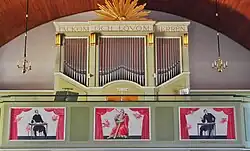 Vor der Orgelempore hängen zwei Kronleuchter aus Messing. Sie unterscheiden sich kaum. Einer wurde 1681 vom Goldschmied Meister Mårten gefertigt, der andere wesentlich später. Die Gemälde der Orgelempore sind ebenfalls Werke von Hjortzberg.