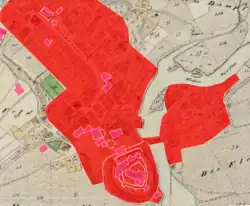 Heute ist die etwa einem gleichseitigen Dreieck entsprechende Anlage (Seitenlänge 72 m) noch gut erhalten. Der äußere Graben wurde 1867 weitgehend verfüllt. Früher konnte er nur über eine hölzerne Zugbrücke überquert werden, die 1839 durch die bestehende Steinbrücke ersetzt wurde.