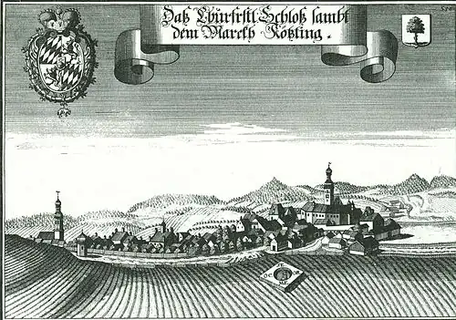 Wie angedeutet, haben hier über die Jahrhunderte viele Um- und Neubauten stattgefunden. Der Stich von Michael Wening, der die Situation um 1720 zeigt, stellt einen geschlossenen Burgbereich mit einem hohen Kirchturm dar, der mit einer Dachzwiebel abgeschlossen wird. Ebenso ist der Torturm deutlich zu sehen.