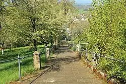 Der ehemalige Wallfahrtsweg führt von der Wandergasse über eine Brücke und durch einen alten Obstgarten bis in die Kirche hinein. Er ist noch aus historischer Zeit mit Sandsteinplatten belegt. Auch heute wird er noch als Gottesdienstweg und Passionsweg (Gründonnerstag) genutzt.