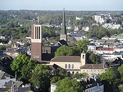 Die katholische Pfarrkirche St. Mariä Geburt wurde 1928/1929 von dem Architekten Emil Fahrenkamp erbaut. Der Bau der Kirche wurde maßgeblich von der Familie Thyssen finanziert.[2] Das Wandbild über dem Altar, das das Himmlische Jerusalem darstellt, stammt von Ernst Rasche.[3] Eine von Dominikus Böhm entworfene Taufkapelle wurde 1943 zerstört.[4]
