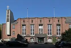 Köln-Niehl Evangelische Kirchengemeinde Köln-Niehl-Riehl Petrikirche Köln 1964 Am 23. Juli 2023 entwidmet, die Kirche soll durch Wohnbebauung mit Gemeinderäumen ersetzt werden[4]