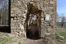 Das ehemalige Kirchenschiff weist eine Länge von 27 Metern auf, das Presbyterium ist 6 Meter und das Schiff 8 Meter breit. Der 30 Meter hohe Turm sowie südseitig eine kleine gewölbte Sakristei sind ebenfalls erhalten. Rund um die Kirche lag einst auch der Friedhof. Heute noch sind Spuren der alten Gräber dort erkennbar.