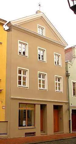 Der dreigeschossige Satteldachbau besitzt einen profilierten Dreiecksgiebel. In der Barockzeit wurde das Haus aufgestockt und ausgebaut. Überformungen fanden im 19. Jahrhundert statt.