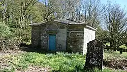 Im westlichen Teil des Friedhofs ist ein Mausoleum hervorzuheben, das zusammen mit der Kirchenruine unter Denkmalschutz steht. Das Bauwerk weist einen quadratischen Grundriss auf. Sein Mauerwerk besteht aus Bruchstein, wobei der Eingangsbereich mit poliertem Granit abgesetzt ist. Die Türe schließt mit einem bekrönenden Gesimse auf Kragsteinen. In den Türsturz ist die Inschrift FOR AS IN ADAM ALL DIE, EVEN SO IN CHRIST SHALL BE MADE ALIVE graviert. Darüber ist eine halbkreisförmige Sandsteintafel mit der Inschrift ERECTED BY SIR SAMUEL HANNAY 1787 eingesetzt. Die Tafel ist möglicherweise späteren Datums und wurde in die Aussparung eines ehemaligen Kämpferfensters eingelassen. An den Seitenfassaden befindet sich je ein Spitzbogenfenster. Unterhalb des flachen, schiefergedeckten Pyramidendaches läuft ein gekehltes Kranzgesimse um.[1]