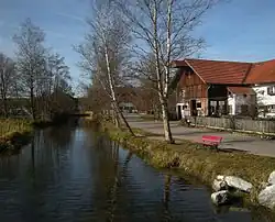 - Elbbach, von rechts und Süden bei Aitrang-An der Säge an der Gemeindegrenze zu Ruderatshofen