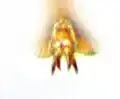 Das Schildchen ist im Vergleich zu anderen Arten der Gattung groß. Es ist länglich und überragt das Niveau der Flügeldecken (Abb. 6).