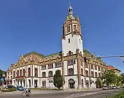 Das Rathaus der Stadt wurde 1911 nach Plänen des Architekten József Vas (1866–1910) erbaut. Es ist ein bedeutendes Beispiel des ungarischen Jugendstils. Die reiche florale Ornamentierung geht auf die ungarische Volkskunst zurück, welche besonders oft bei Hirten Verwendung fand. Auffallend ist auch das grüne Dach, welches aus Majolikaplatten aus der Zsolnay Porzellanmanufaktur stammt.