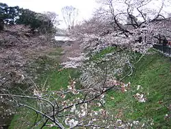 Die Burg Edo war im Norden durch die „Nördliche Vorburg“ Kitanomaru geschützt, zu der man durch ein hochgelegenes Tor und eine Zugbrücke über einen Graben gelangte. Vom Kitanomaru gelangte man dann in die Stadt durch eine große Toranlage, das Tayasu-mon, und einen Damm über den hier tief eingeschnittenen „Inneren Graben“, westlich vom Damm Chidori-ga-fuchi und östlich Ushi-ga-fuchi und Shimizu-bori genannt. Die Ufer der Gräben sind heute für ihre Kirschblüte berühmt. Ein weiteres Tor, das Shimisu-mon, steht an der Ostflanke des Kitanomaru.