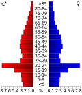 Auf das gesamte County bezogen setzte sich die Bevölkerung zusammen aus 20,60 % Einwohnern unter 18 Jahren, 21,60 % zwischen 18 und 24 Jahren, 24,60 % zwischen 25 und 44 Jahren, 21,60 % zwischen 45 und 64 Jahren und 11,60 % waren 65 Jahre alt oder darüber. Das Durchschnittsalter betrug 31 Jahre. Auf 100 weibliche Personen kamen 98,70 männliche Personen, auf 100 Frauen im Alter ab 18 Jahren kamen statistisch 97,20 Männer.