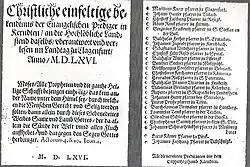Im Lauf des 16. Jahrhunderts erfreuten sich die Lehren des Protestantismus in Innerösterreich immer größerer Beliebtheit, sowohl bei der einfachen Bevölkerung als auch bei den Landständen. Die Reformation erreichte Klagenfurt später als andere Städte, erst im Jahr 1563 verlas Martin Knorr, Pfarrer von Klagenfurt, in der St.-Egid-Kirche „die erste deutsche Messe oder Kommunion nach Gottes reinem Befehl und der Augsburgischen Konfession“. Knorr unterschrieb drei Jahre später neben anderen Kärntner Pfarrern ein Bekenntnis Kärntner Prädikanten, womit der neue Glauben gleichsam zur offiziellen Religion der Stadt erklärt wurde.[2] Auch der zahlreiche Zuzug unter anderem aus Württemberg und Sachsen trug im zweiten Drittel des 16. Jahrhunderts in der rasant wachsenden Stadt dazu bei, dass bereits ab den 1570er Jahren von einer durchgehend protestantischen Bevölkerung Klagenfurts gesprochen werden kann.[3]