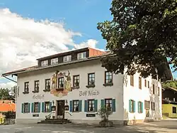 Der Ort liegt am Eingang (Mautstraße) zum Elmauer Hochtal mit Schloss Kranzbach und Schloss Elmau. Hier ist die Pforte zum Wettersteingebirge mit dem bekannten Jagdschloss König Ludwigs II. am Schachen.