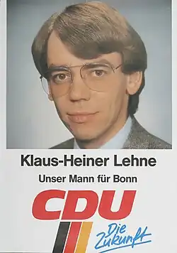 Klaus-Heiner Lehne (* 28. Oktober 1957 in Düsseldorf) ist ein deutscher Politiker (CDU). Er ist seit März 2014 Mitglied des Europäischen Rechnungshofs und war von September 2016 bis Oktober 2022 dessen Präsident. Zuvor war er von 1994 bis 2014 Mitglied des Europäischen Parlaments,[1] wo er von 2004 bis 2014 Mitglied des Vorstands der Fraktion der Europäischen Volkspartei und von 2009 bis 2014 Vorsitzender im Rechtsausschuss war.